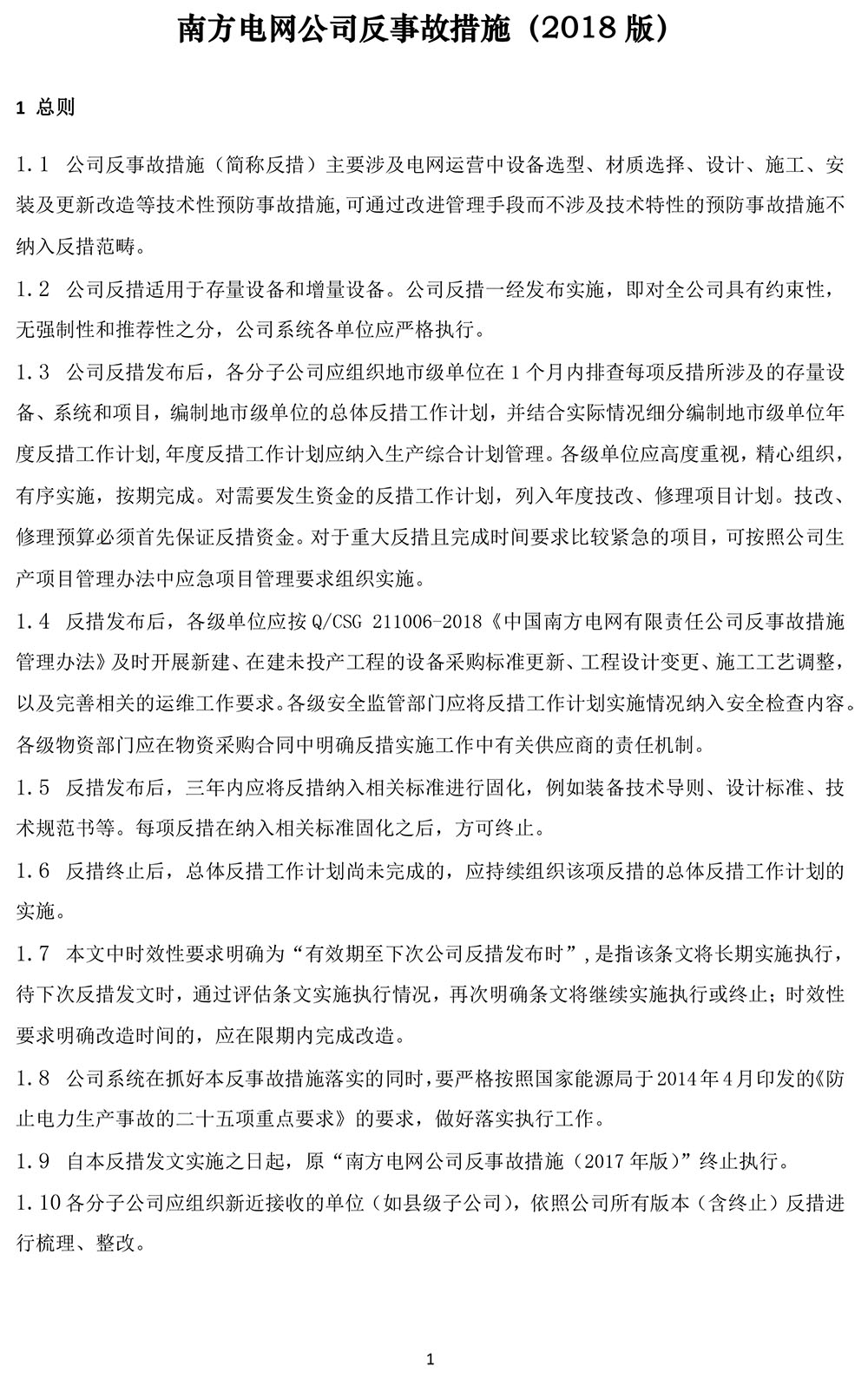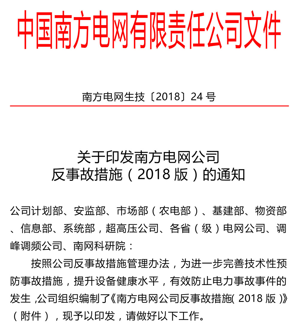 南方電網(wǎng)公司反事故措施(2018版)