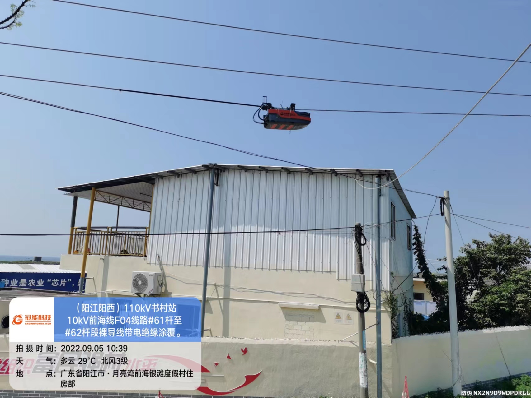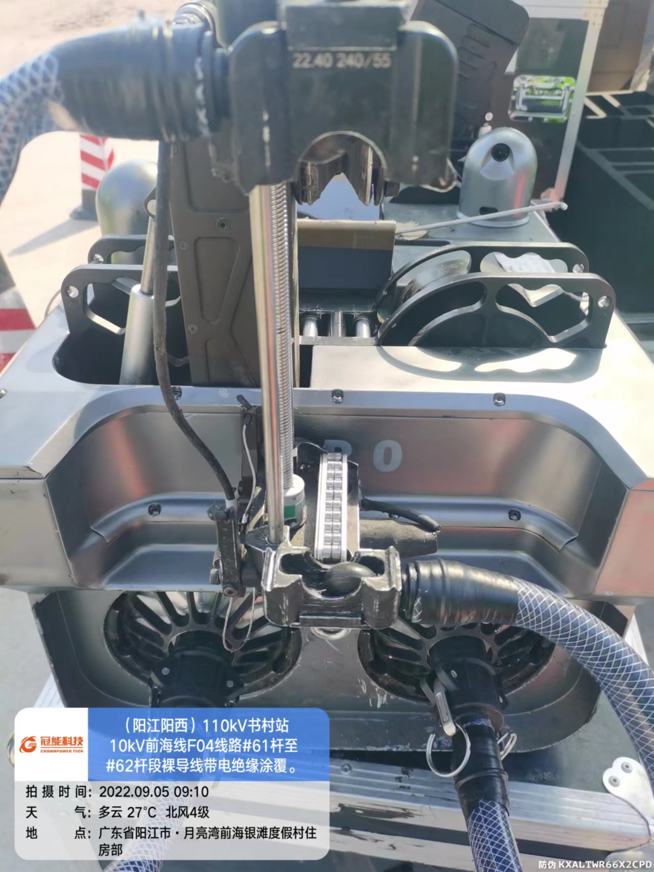陽江陽西110kV書村站10kV前海線F04線路#61桿至#62桿段裸導(dǎo)線帶電絕緣涂覆及交底。