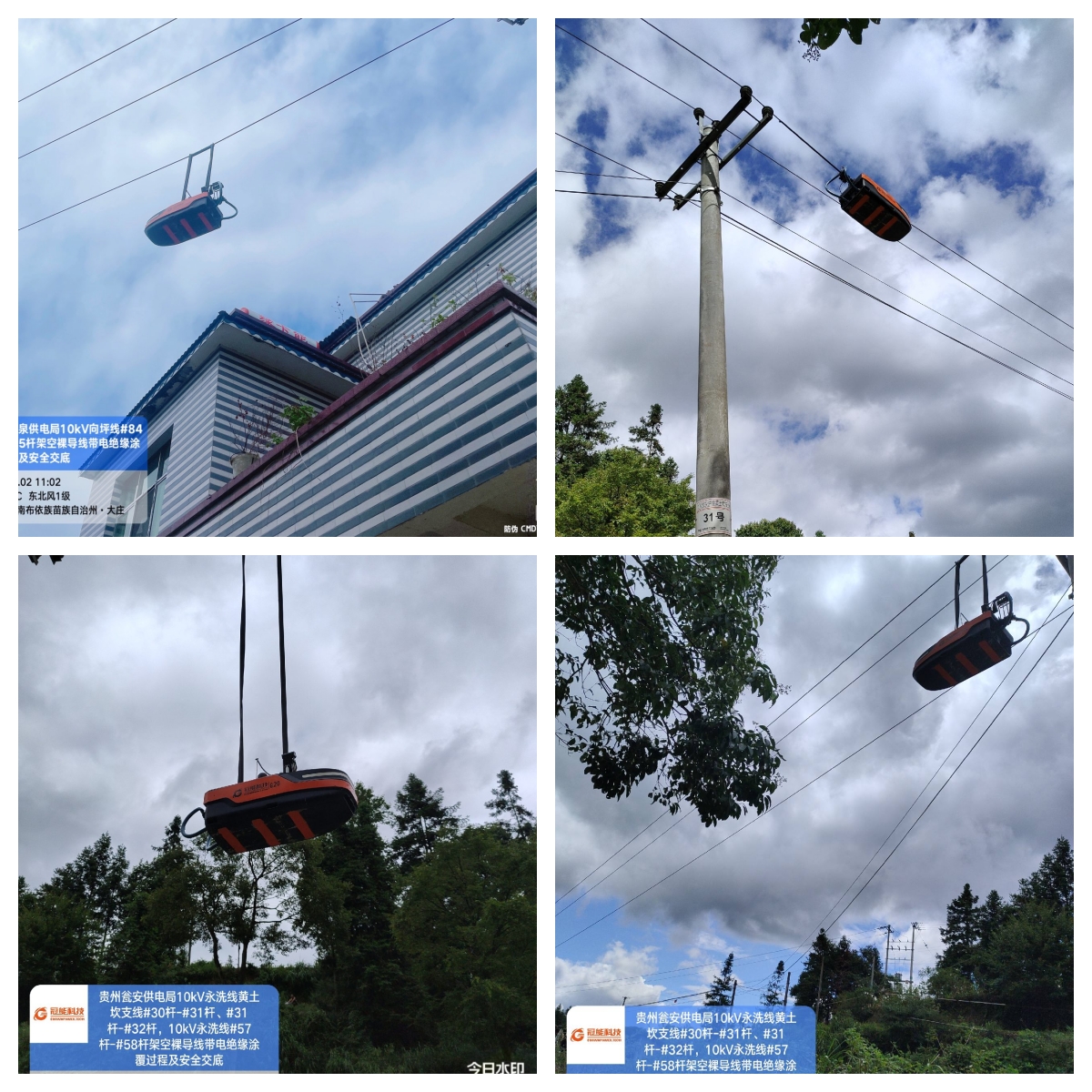 近日,廣東冠能來(lái)到貴州,分別對(duì)向坪線、永洗線黃土坎支線進(jìn)行帶電絕緣涂覆,工作人員在不停電情況下,操作一臺(tái)帶電絕緣化涂覆機(jī)器人在一段40米裸導(dǎo)線上從左到右平穩(wěn)滑動(dòng),用時(shí)20分鐘將40米長(zhǎng)電線成功涂上絕緣材料。