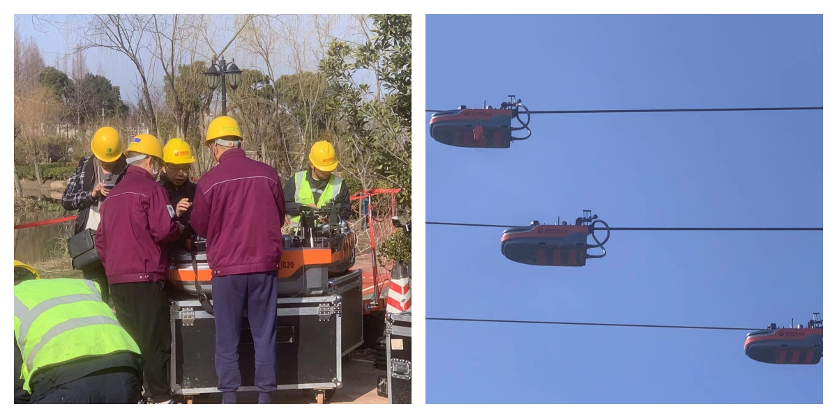 本次改造采用3臺(tái)帶電絕緣涂覆機(jī)器人同時(shí)作業(yè),該涂覆機(jī)器人自主上線,無(wú)需人員登高,高效的對(duì)架空裸導(dǎo)線線路進(jìn)行自固化絕緣材料涂覆處理,為該線路穿上了一層“防護(hù)服”。