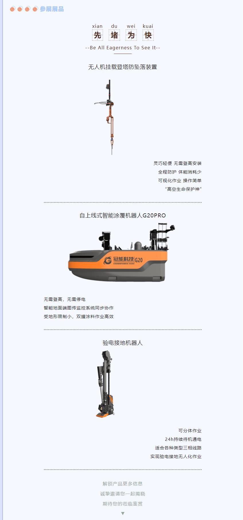跟隨市場發(fā)展所需,時代政策新指引,冠能創(chuàng)變求新,以數(shù)智化帶電作業(yè)運維為核心,針對裸導(dǎo)線絕緣化改造、樹障清理、登塔高空作業(yè)、帶電接火、驗電接地、X光無損探傷等作業(yè)領(lǐng)域,研發(fā)出一系列核心技術(shù)領(lǐng)先、產(chǎn)品質(zhì)量過硬、應(yīng)用場景廣泛的智能機(jī)器人及裝置設(shè)備,具備了傳統(tǒng)作業(yè)工具所欠缺的更安全、更高效、更經(jīng)適便捷等產(chǎn)品優(yōu)勢。