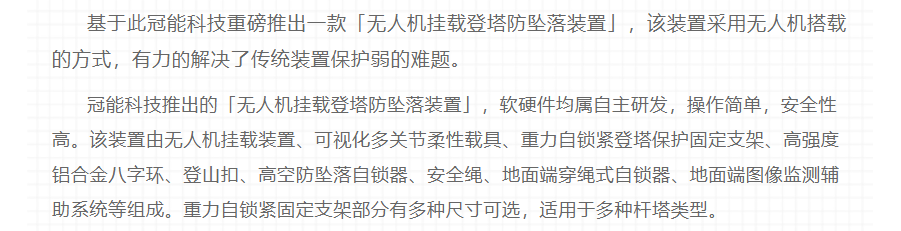 【新品發(fā)布】冠能科技重磅推出「無人機(jī)掛載登塔防墜落裝置」