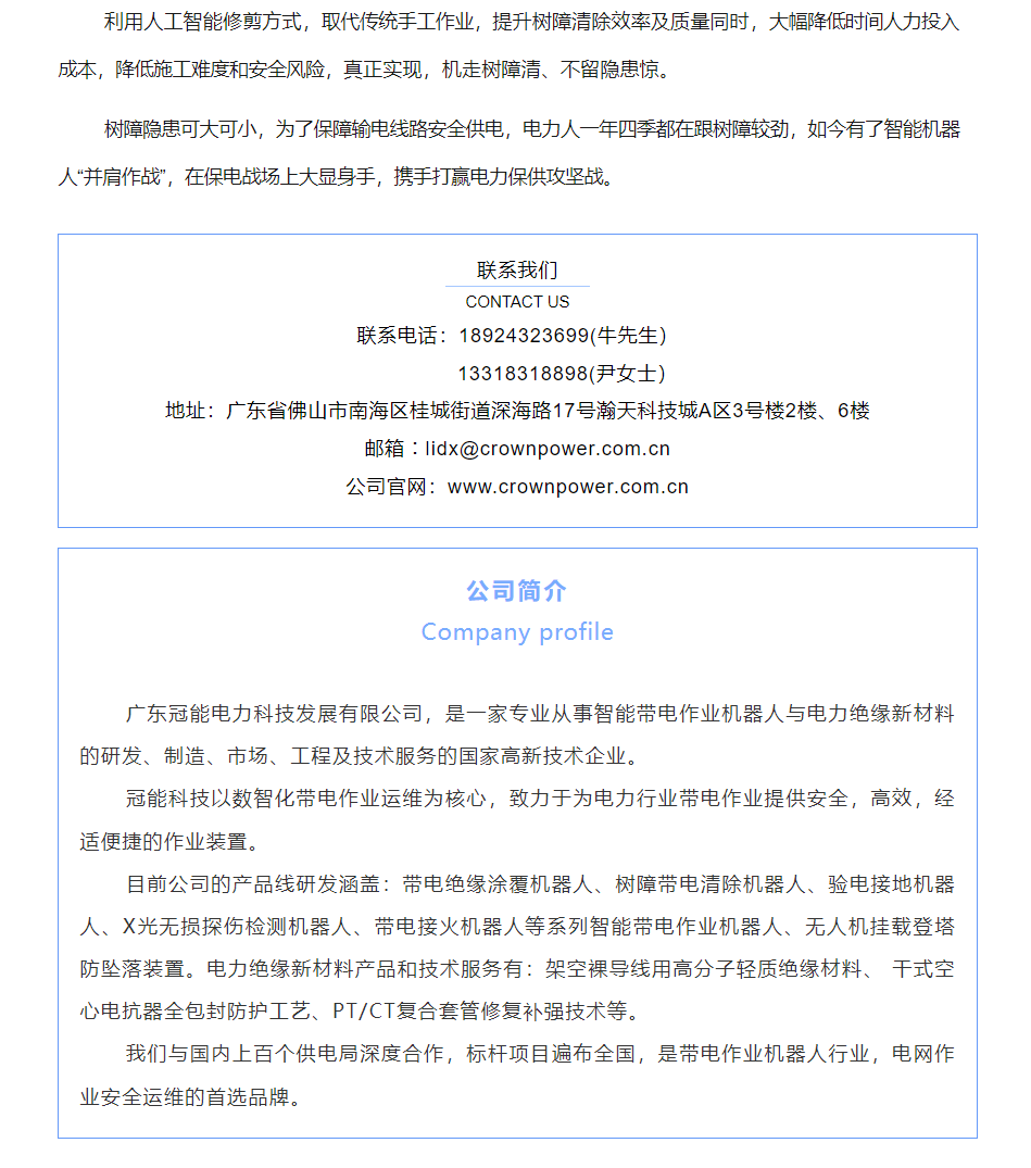 【新品發(fā)布】冠能科技重磅推出「樹障帶電清除機器人」