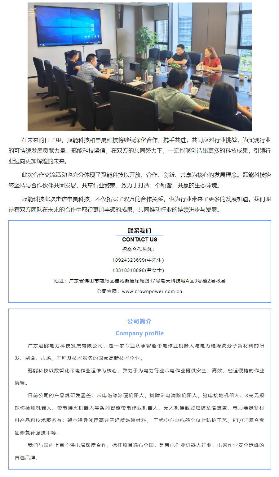 冠能科技:走訪杭州申昊,開啟合作交流新篇章