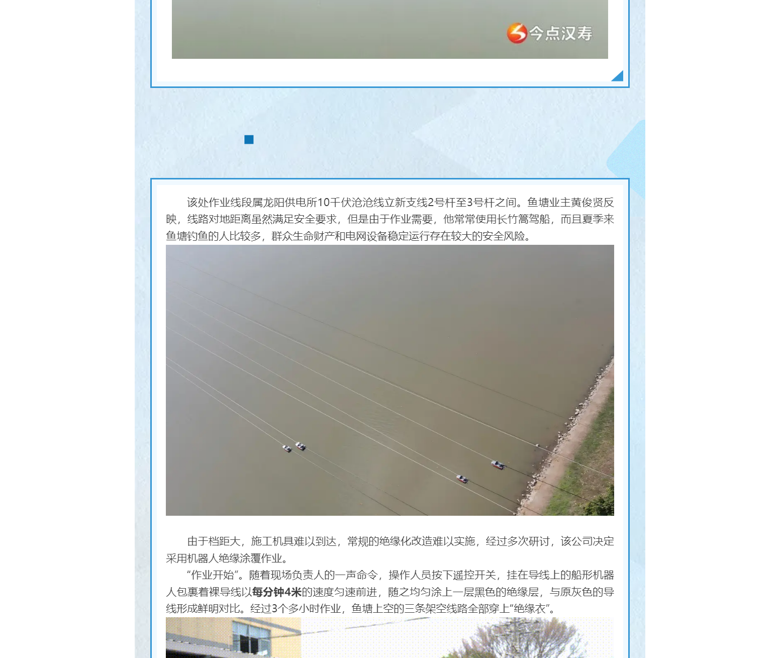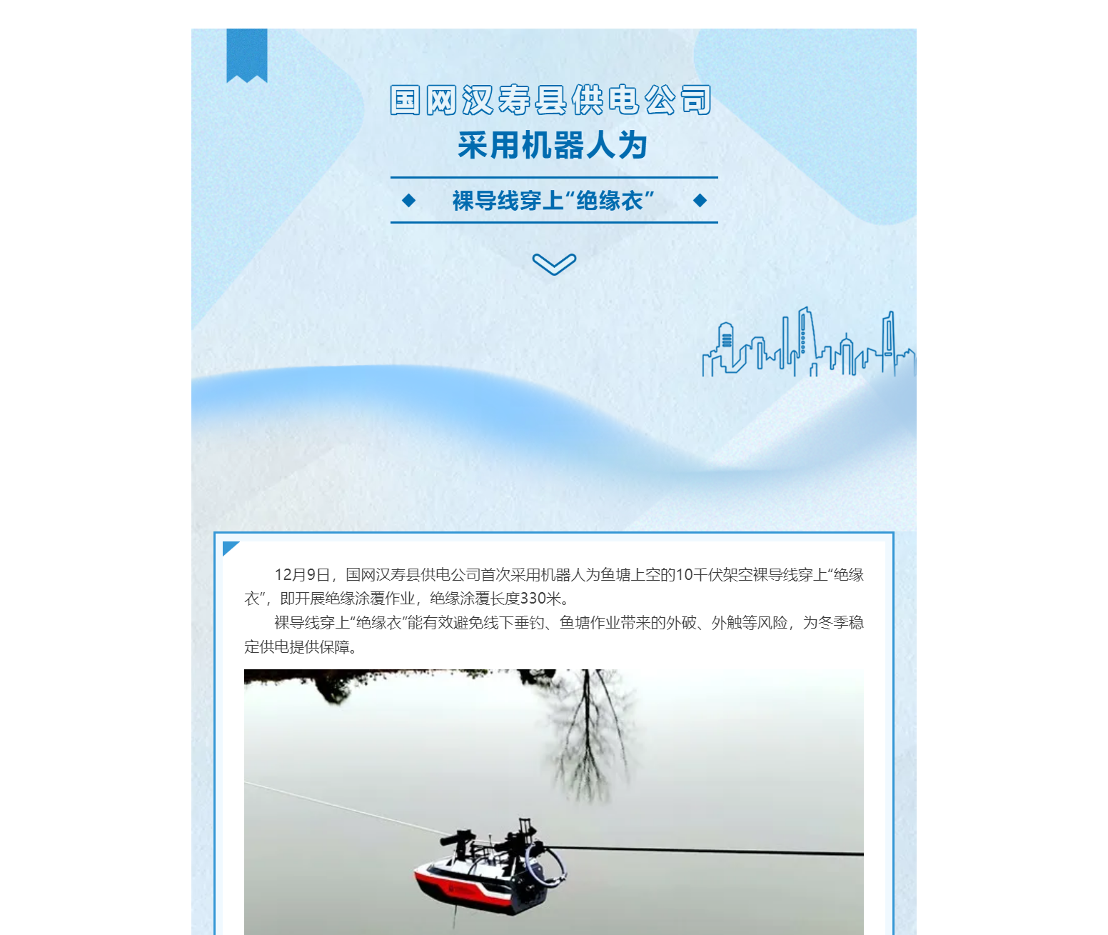 國(guó)網(wǎng)漢壽縣供電公司采用機(jī)器人為裸導(dǎo)線穿上“絕緣衣”