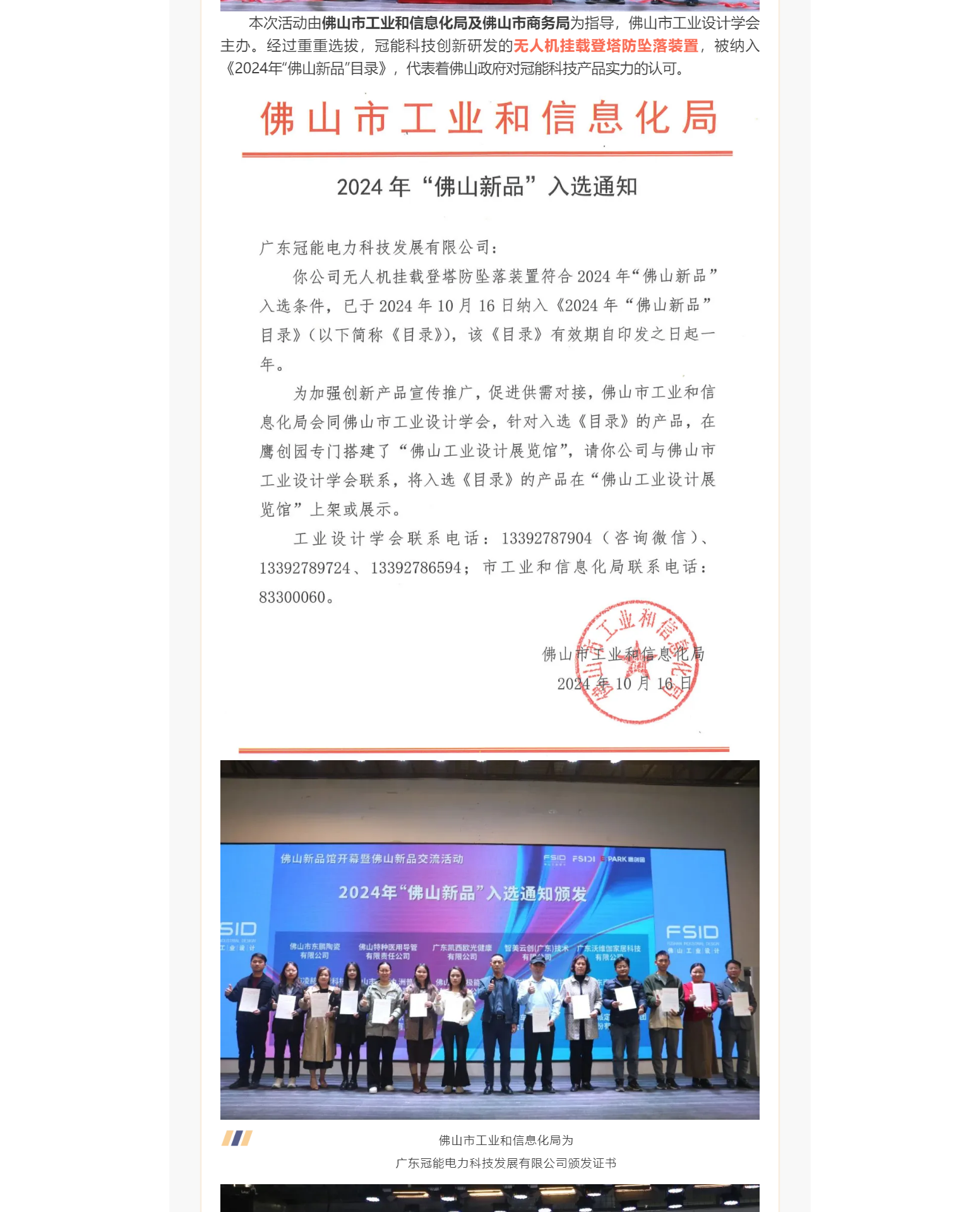 無人機(jī)掛載登塔防墜落裝置入選“佛山新品”