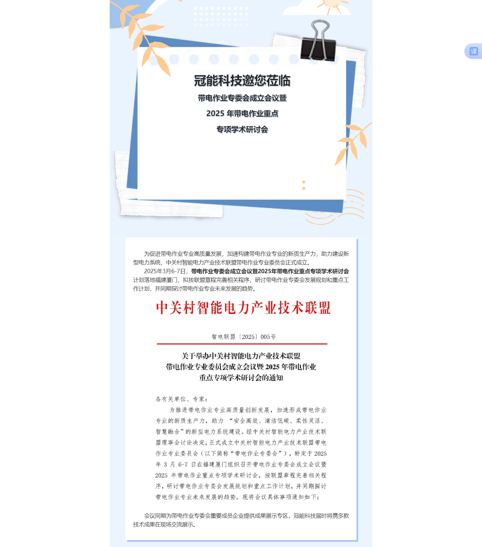冠能科技邀您蒞臨帶電作業(yè)專委會(huì)成立會(huì)議暨 2025 年帶電作業(yè)重點(diǎn)專項(xiàng)學(xué)術(shù)研討會(huì)