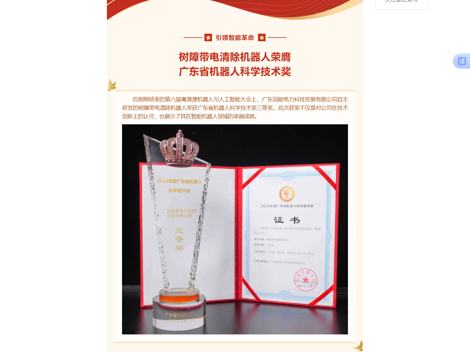 引領(lǐng)智能革命,樹障帶電清除機(jī)器人榮膺廣東省機(jī)器人科學(xué)技術(shù)獎(jiǎng)
